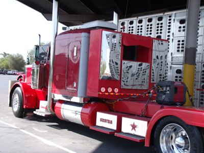 Custom paint, 7″ chino hay hauler stacks with Pickett elbows,550 CAT 18spd, Double rounds with JJ brackets, stainless steps, stainless belly pans, Half fenders, Rockwood